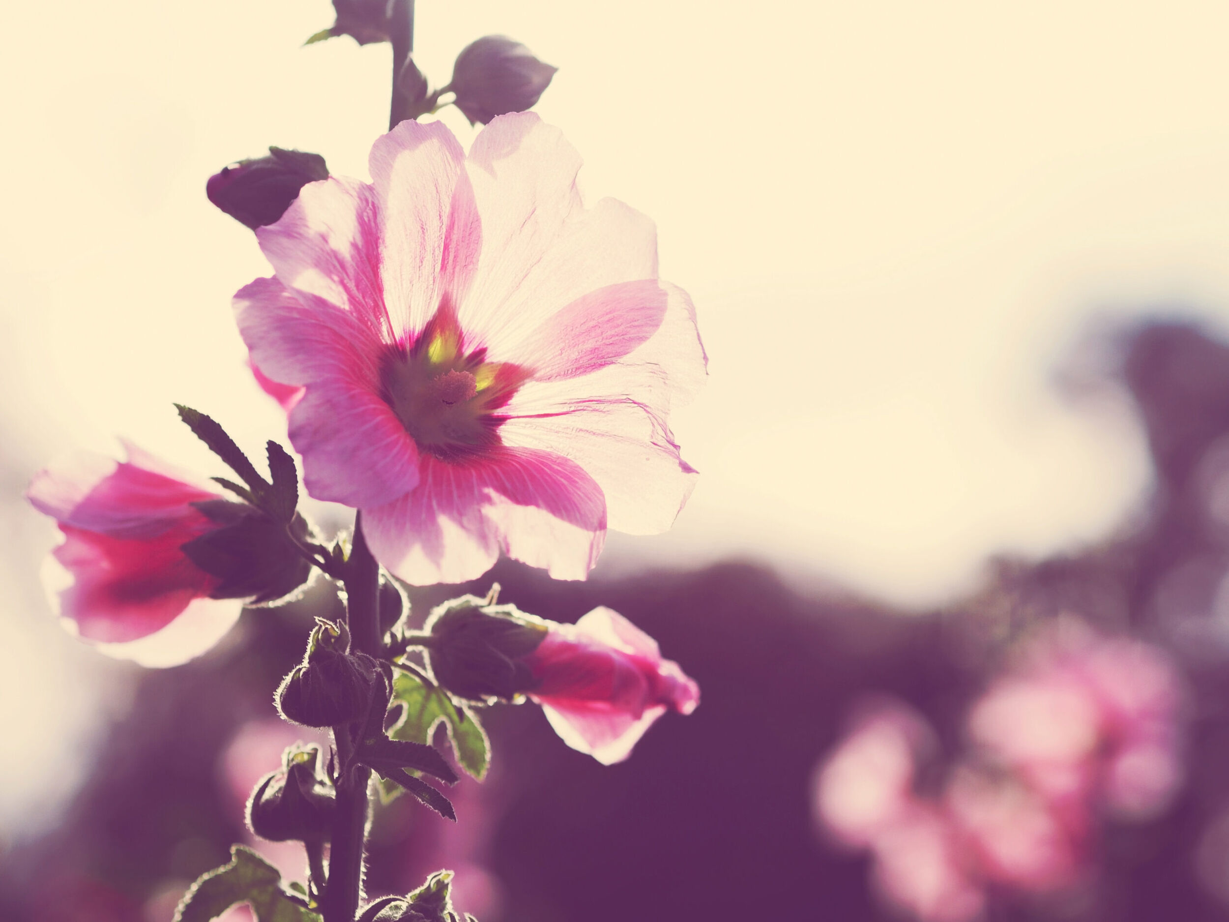 De stokroos is wild en prachtig tegelijk, met zijn lange stengels en mooie, grote bloemen. In de oertijd werd de schoonheid van de roos al erkend, en werd hij meegegeven als grafgift aan de doden. De knoppen zijn zacht, viltig en behaard, een beschermend huisje voor de grote, klokvormige bloemen. De botanische benaming is Alcea Rosa, de Latijnse schrijfwijze voor het Griekse woord Althea, dat genezen betekent – een verwijzing naar het vroegere medicinale gebruik van de stokroos. Ze zijn ook heel lekker door salades en in de thee, en de jonge bladeren kun je koken en eten als spinazie.