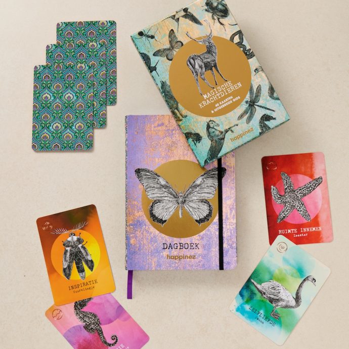 prachtige kleurrijke kaarten met een mooi boekje erbij met de uitleg van de kaarten. erg blij mee, een aanwinst. s morgens altijd even een kaart trekken. dat doet toch iets met je.